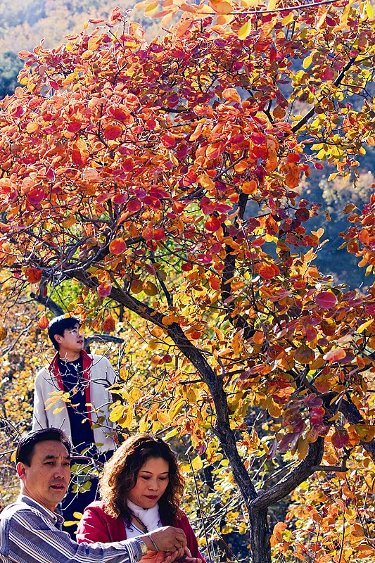 眼下正是京城百姓观赏红叶的最佳时节。据了解,目前香山红叶的变色率为70%左右,并预计11月初为最佳的观赏期。在香山公园内,记者看到,香炉峰、南山黄栌林区已是片片红云,而白松亭、和顺门地段更成为了全园的红叶之冠,在阳光的照射下,显得格外鲜艳。另据介绍,今年,香山公园还通过网站,每周两次发布赏红叶指数以及相关信息,以供游客参考。图为游客在香山赏红叶时的情景。 本报记者董芳忠/摄影报道