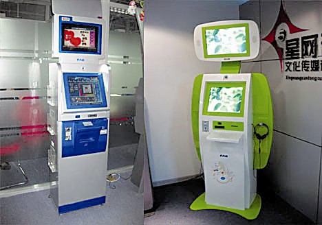 “这个就是我们的5C娱乐终端机。”站在旁边的工作人员向记者介绍。所谓的“5C”,就是在原有的3C:计算机(Computer)、通讯 (Commu-nication)和消费电子产品(Consumer-Electronic)基础上,增加了内容产品(content)与汽车电子(carelectronic),由此衍生成5C融合。而通过5C娱乐终端机可以将最新的正版电影、电视剧、歌曲音乐、游戏、电子书等方便地下载到手机、U盘、MP4、移动硬盘等移动存储设备上,同时还可以实现自助缴费、会员积分查询、商场导购、地图查询、优惠券打印、数码照片打印等功能。