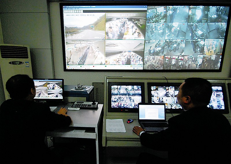 在刚过去的“十一”黄金周,江西省九江市参与假日运输的全部卧铺客车均安装并启用了3G视频设备,便于监管人员实时监控司机是否在凌晨2点至5点停车休息,防止司机疲劳驾驶,同时还能有效防止客车超载现象的发生,确保长途客车的运输安全。 图为在江西九江长途汽车站,监管人员正在通过视频实时监控卧铺客车的运营情况。asianewsphoto/胡国林