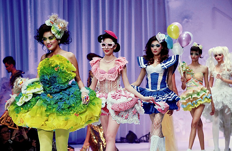 近日,毛戈平2012彩妆造型设计发布会在D·PARK北京会所举行。本次发布会展示了毛戈平学校师生2012彩妆造型的设计风格。他们以独特的创意和构思,在运用水墨、哥特、威尼斯、埃及和芭比等不同艺术风格的同时,又汇聚了中西方文化的精髓,为观众奉献一场耳目一新的创意彩妆秀。图为发布会现场模特们走秀时的情景。 本报记者 董芳忠/摄