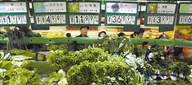 在中秋、国庆假期因素的拉动下,9月居民消费价格指数(CPI)一跃攀升至“3”时代。以鲜菜、肉类为代表的食品价格走高成为推升CPI上涨的直接推手。国家统计局日前公布的最新数据显示,9月,全国居民消费价格总水平同比上涨3.1%(同比涨幅创7个月新高)。其中,城市上涨3.0%,农村上涨3.3%;食品价格上涨6.1%,非食品价格上涨1.6%;消费品价格上涨3.1%,服务价格上涨2.9%。1-9月平均,全国居民消费价格总水平比去年同期上涨2.5%。图为北京市民在选购蔬菜时的情景。 本报记者董芳忠摄影报道