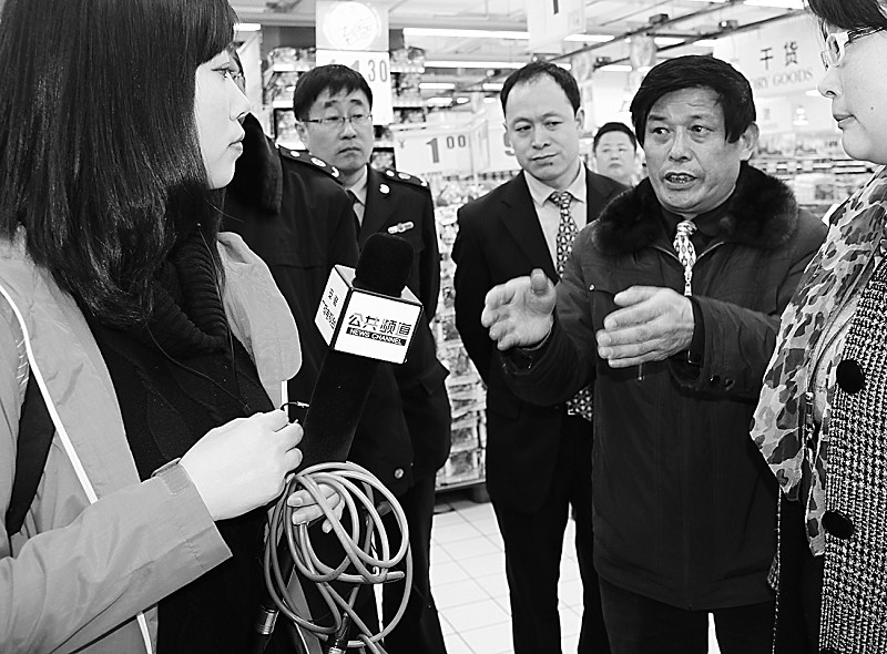 1:蚌埠市消协秘书长何德启(右二)接收媒体采访。陆永芳/摄