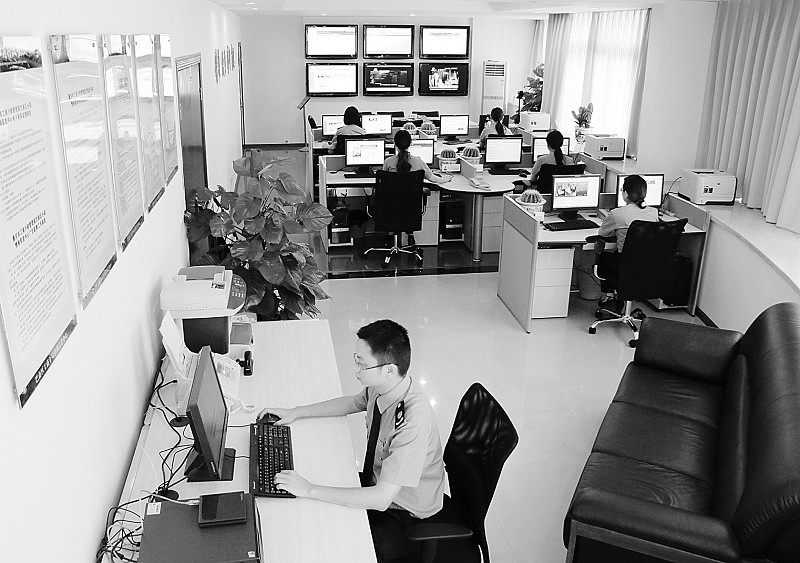 图2:重庆市工商局巴南分局情报信息中心工作人员在分析近期企业信用信息汇总情况。