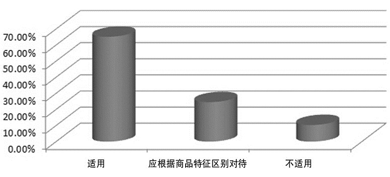 在对电影、门票、餐饮、商城抵用券等票务商品是否应适用7日无理由退货规定的调查中,39.37%的被调查者认为适用,37.91%的被调查者认为应视具体情况而定、不应一刀切,22.72%的被调查者认为不适用。