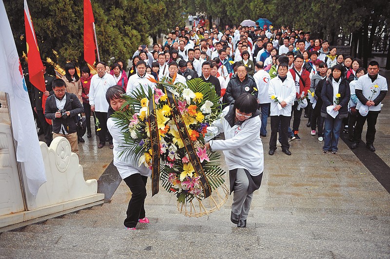 今年清明节,恰逢抗日战争胜利70周年。连日来,人们纷纷来到坐落在卢沟桥畔的中国人民抗日战争纪念馆、平西抗日纪念馆等地,举行祭奠抗战英烈等活动,追思他们的丰功伟业。图为4月2日,人们在平西抗日纪念馆向英烈墓敬献鲜花。本报记者董芳忠摄影报道