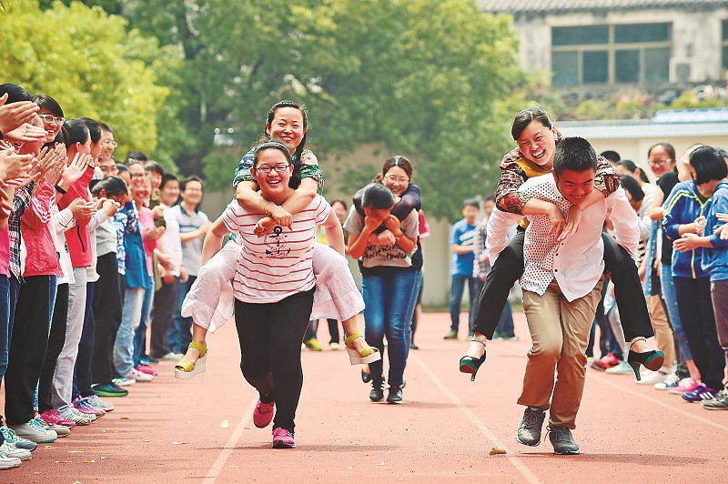 5月7日,在安徽省合肥市第三十八中学举行的 “感恩母亲我背妈妈”母亲节主题活动中,学生们背着妈妈在操场上参加趣味赛跑。当日,安徽合肥市举办丰富多彩的活动,让孩子们感受母亲的艰辛,表达对母亲的感谢,迎接即将到来的母亲节。新华社记者杜宇摄影报道
