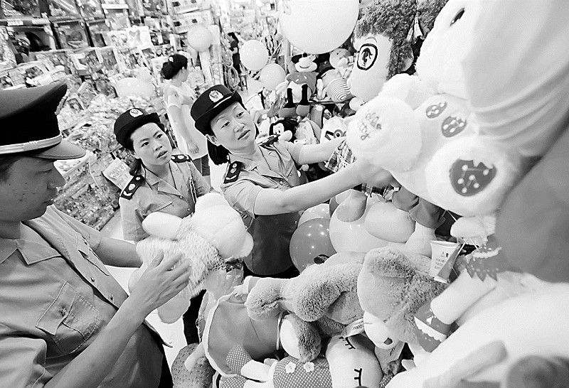 近日,山东省临沂市河东区工商局开展消费者权益保护专项执法活动,重点围绕群众当前普遍关注的热点问题,先后对儿童用品等产品进行专项执法检查。图2为该局工商执法人员在九州超市河东店检查儿童玩具。