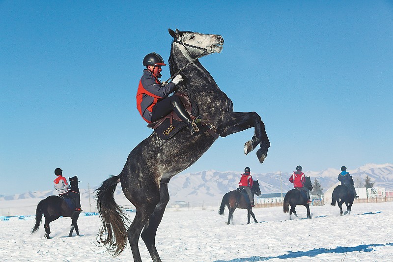1月15日,中国新闻摄影学会和中国产业报协会联合组织的中央媒体新春走基层采访团,来到新疆昭苏县赛马场采访。据介绍,昭苏县共有10万多匹马,各种改良马2000多匹,以满足市场对短距离速度马、长距离耐力马、速步马、一般骑乘马等不同类型马匹的需求。据悉,近年来,当地政府大力发展马文化,提升马文化在旅游业发展中的支撑作用,极大地促进了当地的旅游和经济发展。本报记者董芳忠摄影报道