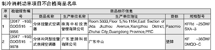 制冷量项目不合格商品名单 广东省工商局制表