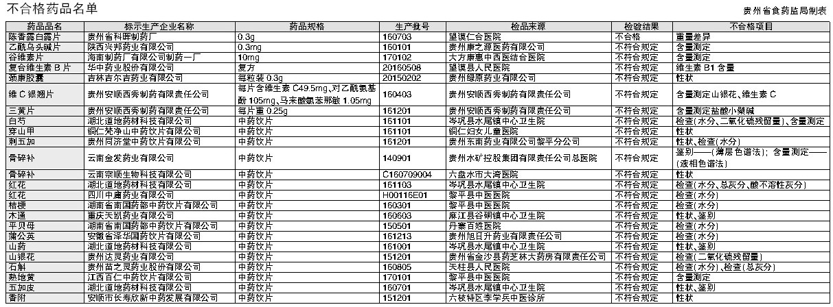 贵州 维C银翘片 颈康胶囊等24批次药品质量不过关