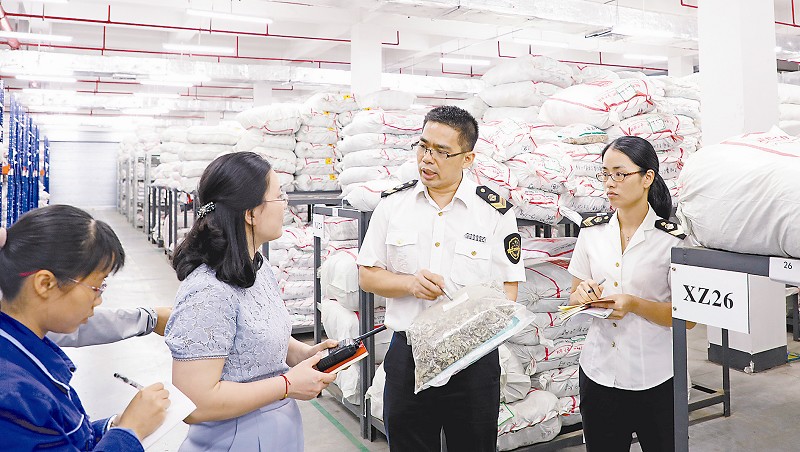 今年以来,广西区药品监督管理局在全区范围内开展为期一年的中药饮片质量集中整治行动,通过企业自查、飞行检查等手段,重点打击中药饮片生产企业掺杂使假、染色增重、二氧化硫残留超标等违法违规行为。图为监管人员在广西某药品公司中药饮片成品仓库进行检查。程奇 本报记者顾艳伟摄影报道