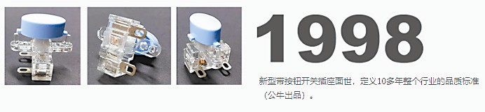 1998年,公牛创始人阮立平首创了新型带按钮式开关插座。别小瞧插座上的这个小按钮,它解决了消费者日常使用插座开关的安全问题,这款新型带按钮式开关插座涵盖了12项技术专利,可以说是定义整个行业的品质标准。直到今天,国内市场上90%的插座用的开关还是阮立平最早设计的这种按钮式开关,简单实用又可靠。2012年,公牛自锁式防脱插座面世。公牛还为这款自锁式防脱插座申请了发明专利——防脱插座及其拔出锁定机构。这项发明专利用在防脱插座上,可以解决在日常使用中插头插入插座后易脱落的问题,使插头插入插座后可以自动固定连接并锁紧,且在一般的外力情况下不会松动。