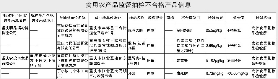 食用农产品监督抽检不合格产品信息