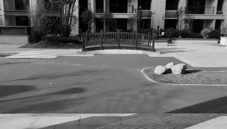 原来,这个“人工湖”里一滴水也没有,是用蓝色塑胶铺成的。对此,开发商回应称,小区未规划人工湖,塑胶湖只是景观。