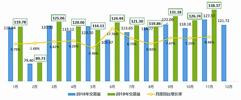 2020年1月2日,中汽协公布最新数据显示,2019年前11个月,全国二手车累计交易量为1323.6万辆,同比增长5.01%。毫无疑问,2019年二手车终端市场销量会再创历史新高。