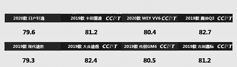 2019年第一批测评车型中,仅有2017款马自达CX-5和2018款大众朗逸两款车型综合得分达到80分以上,成为CCRT年度推荐车型,80分以下的车型有6款。这种结果与消费者心中期待有着不小距离。