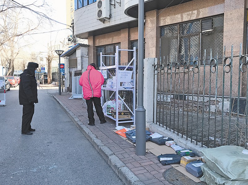 图三:北京中关村某小区近日增加了快递临时存放处。 何梅/摄