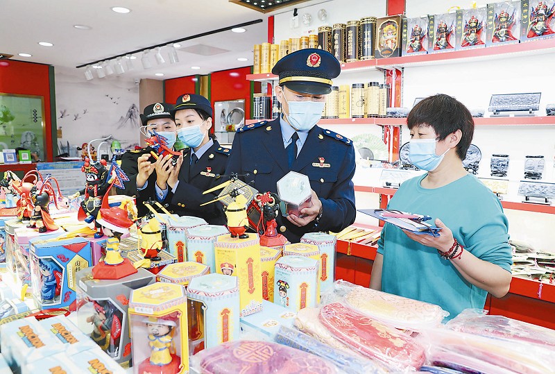 近日,北京市东城区市场监管局组织开展旅游商品质量监督检查,重点检查热门景区周边的民俗工艺品、旅游纪念品等。检查人员全面检查了经营者的主体经营资格,确保证照齐全、合法有效。同时,还对各经营商户就商品质量、进货查验规范执行情况进行宣传引导。本报记者董芳忠摄影报道