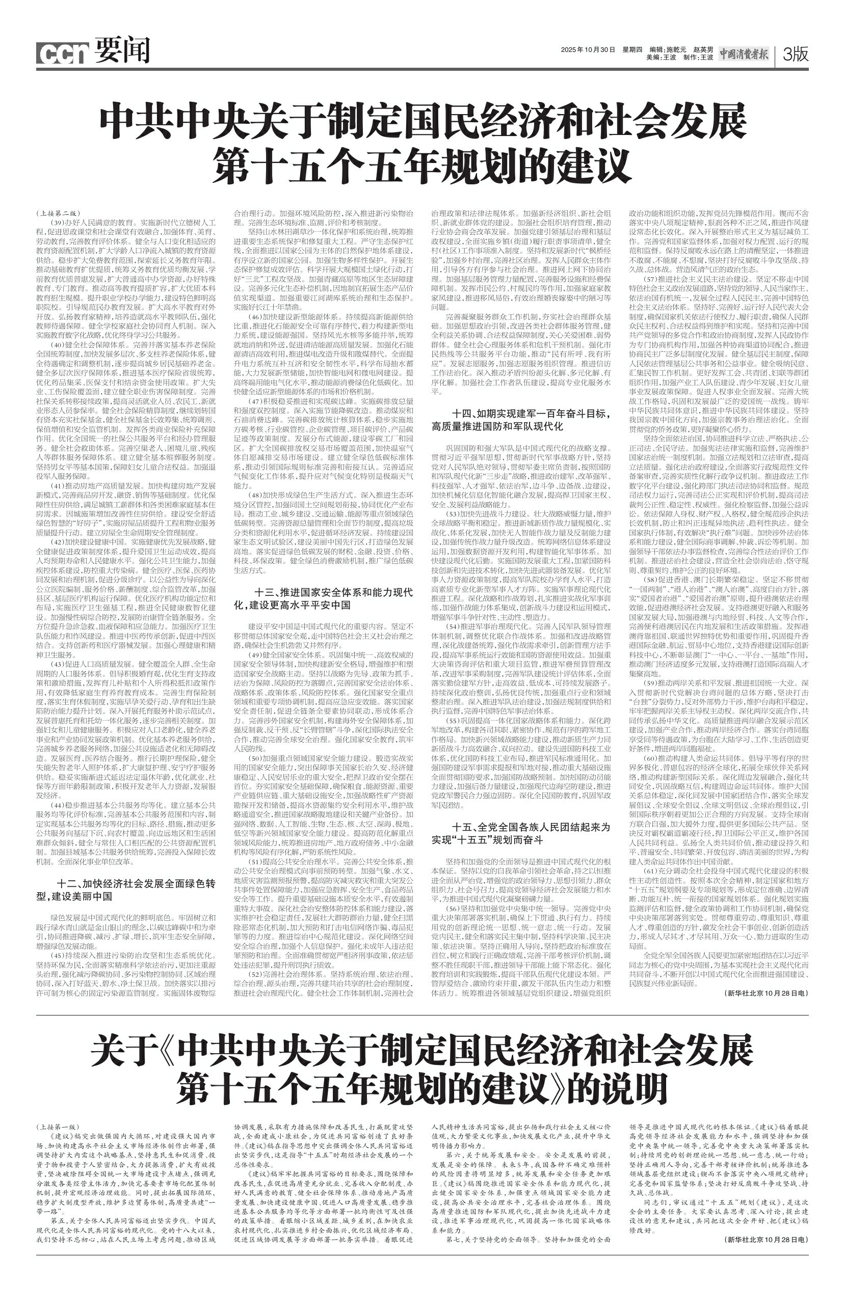 关于《中共中央关于制定国民经济和社会发展第十五个五年规划的建议》的说明