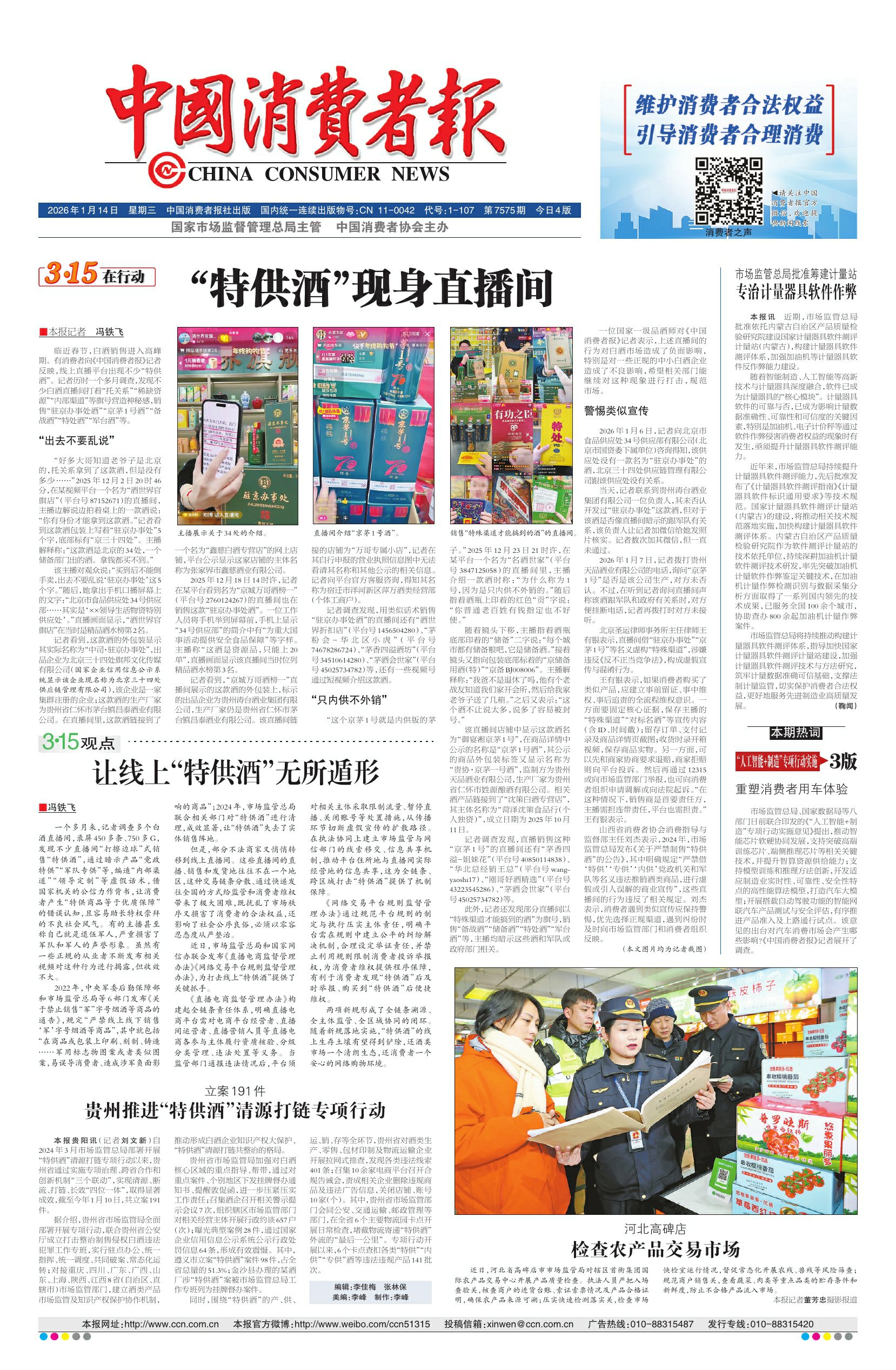 当前位置:中国消费者报20260114期版面概览