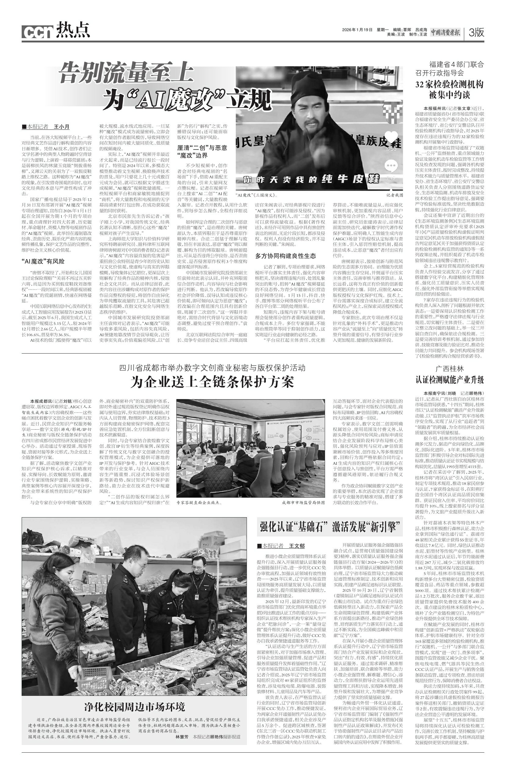 上海师范大学知识与价值科学研究所特聘副研究员、盈科律所互联网律师唐树源对《中国消费者报》记者表示,“AI魔改”内容最直接的危害是严重扭曲公众特别是青少年的历史认知与文化价值观,使虚构与真实的界限模糊,导致集体记忆错位,更深层次上则解构了经典作品的精神内核,侵蚀社会文化共识。而从法律层面看,此类内容往往涉嫌构成对原作者的保护作品完整权的侵犯,将创作自由异化为单纯攫取流量的工具,其危害已超越娱乐范畴,直指文化安全与网络生态秩序的维护。