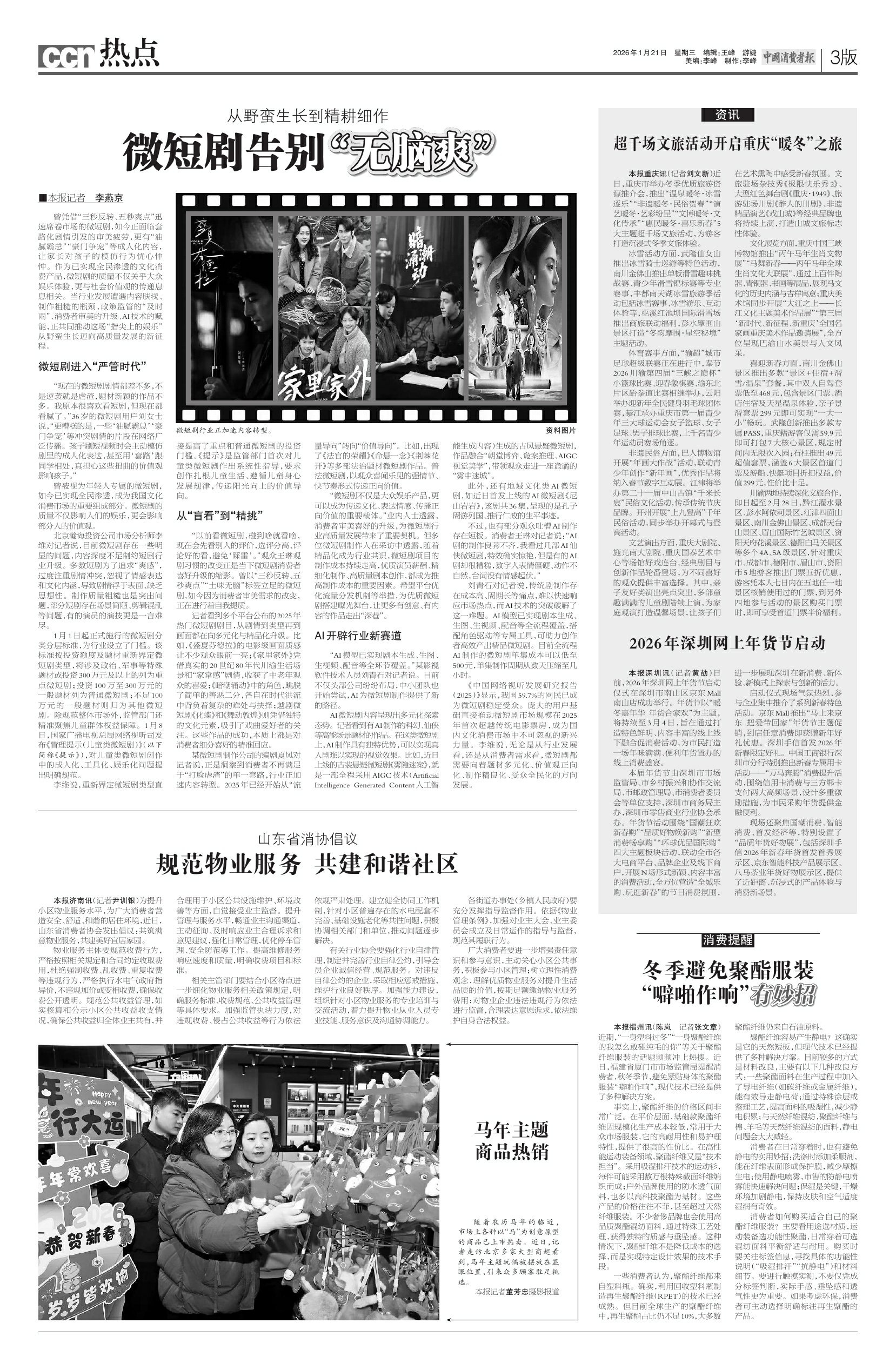 “微短剧不仅是大众娱乐产品,更可以成为传递文化、表达情感、传播正向价值的重要载体。”业内人士透露,消费者审美喜好的升级,为微短剧行业高质量发展带来了重要契机。但多位微短剧制作人在采访中透露,随着精品化成为行业共识,微短剧项目的制作成本持续走高,优质演员薪酬、精细化制作、高质量剧本创作,都成为推高制作成本的重要因素。希望平台优化流量分发机制等举措,为优质微短剧搭建曝光舞台,让更多有创意、有内容的作品走出“深巷”。